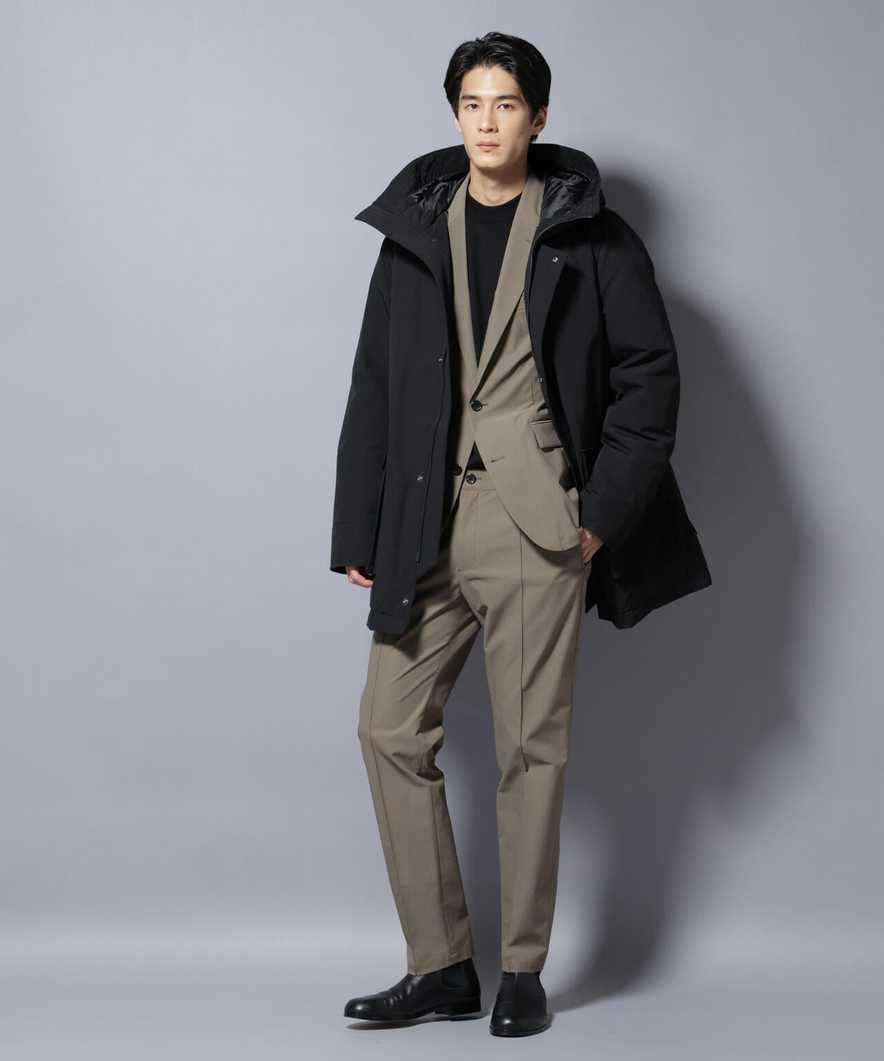 ・撥水加工を施したアウターに適したカジュアル素材