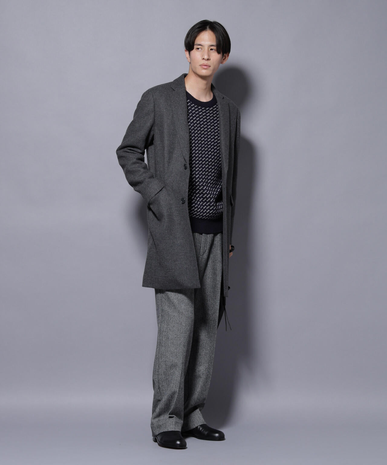 柔らかなウールブレンドメルトン素材で仕上げた、王道かつ洗練されたチェスターコート。細身でシャープなシルエットに、ややシェイプを効かせたウエストラインがスタイルをすっきり見せてくれる一着。ビジネスシーンはもちろん、休日のカジュアルスタイルにも活躍する汎用性の高いアイテムです。