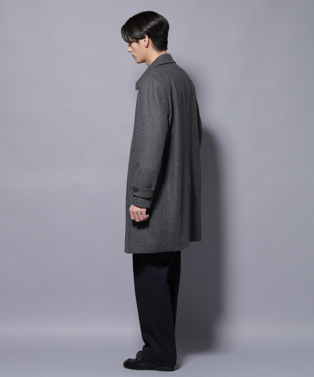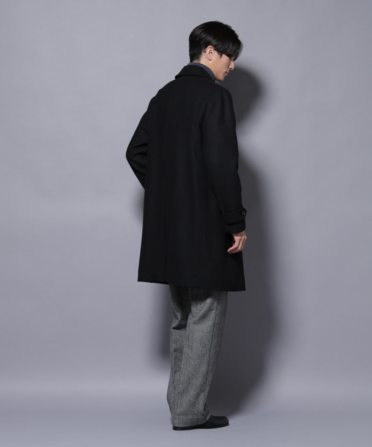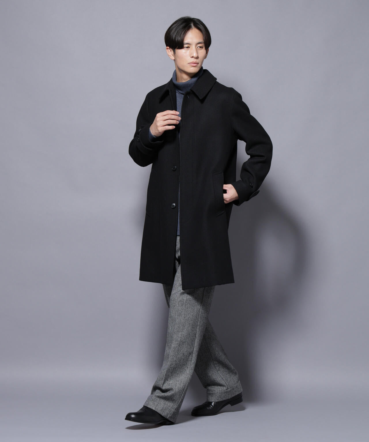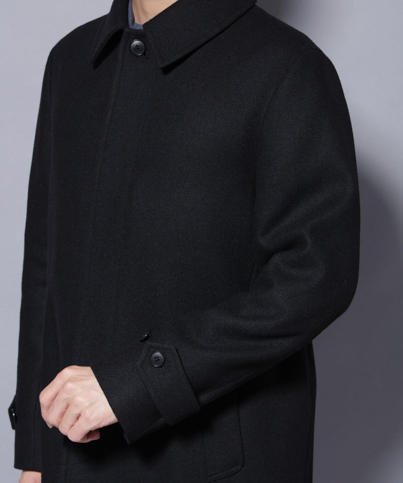 柔らかなウールブレンドメルトンを使用した端正なステンカラーコート。比翼仕立てによるミニマルなフロントデザインが、洗練された印象を演出。ビジネスシーンはもちろん、休日のカジュアルスタイルにも活躍する汎用性の高いアイテムです。