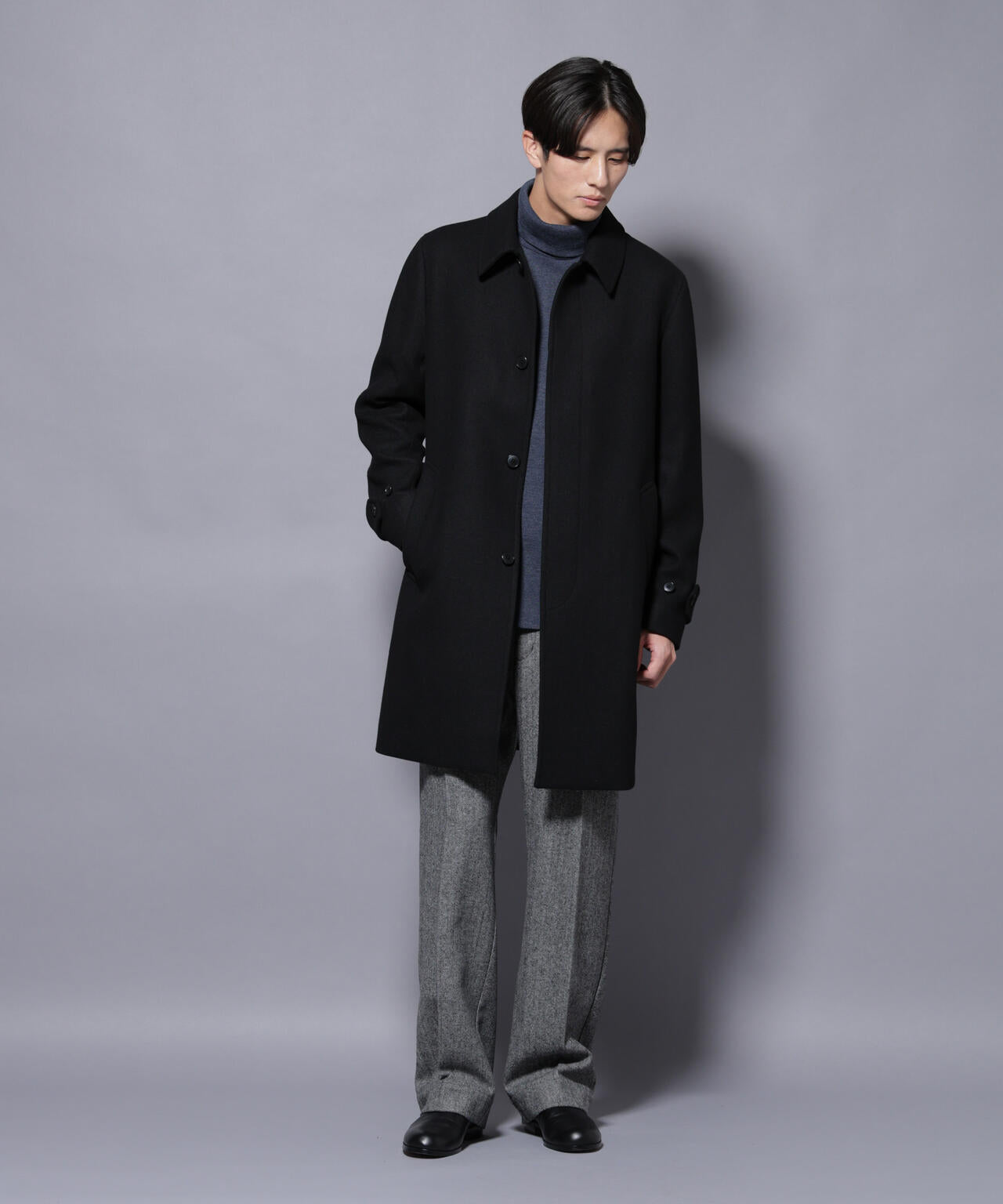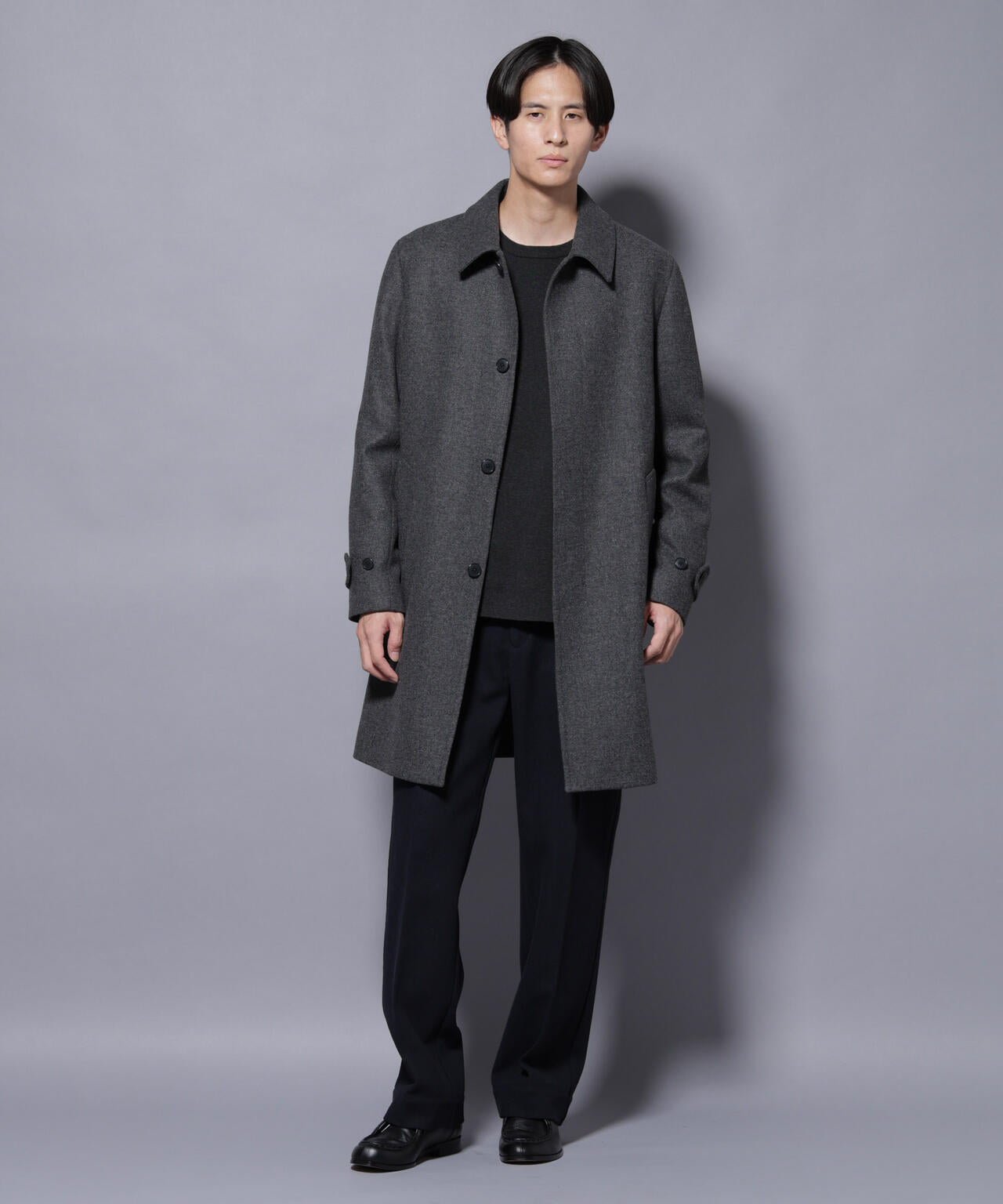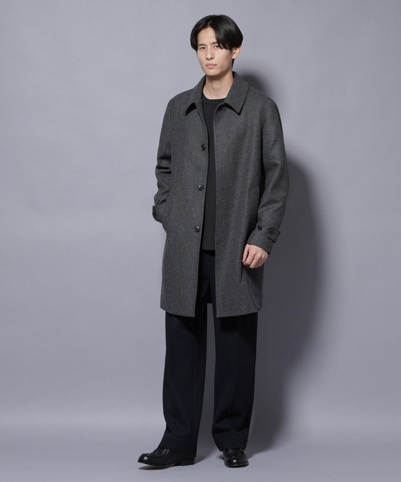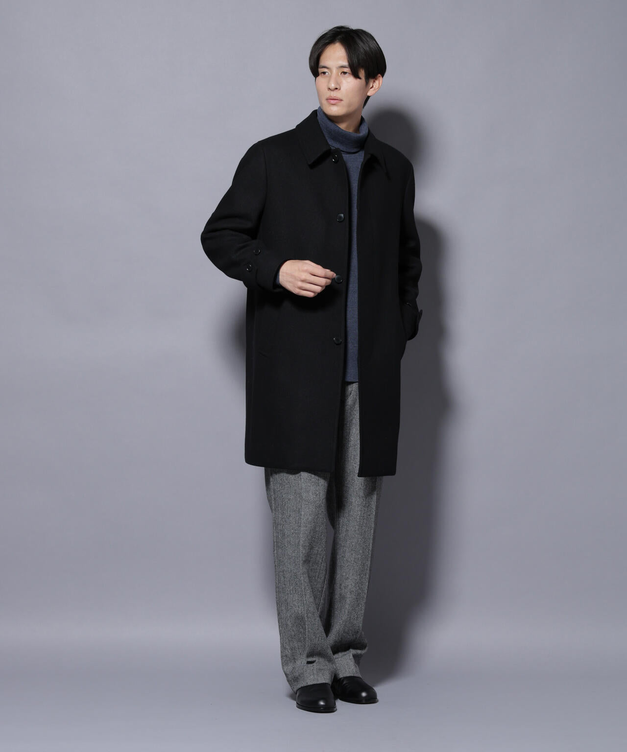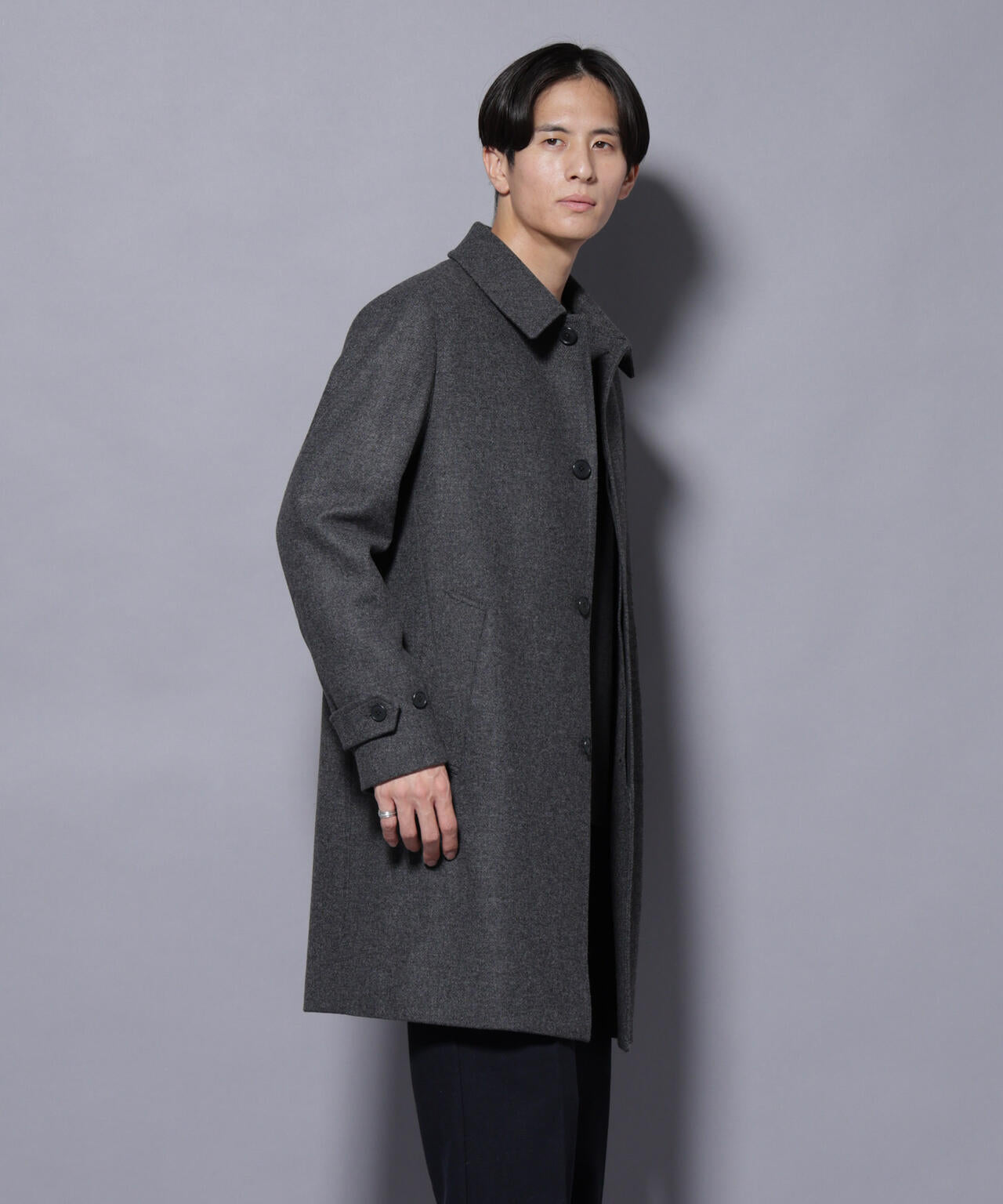 柔らかなウールブレンドメルトンを使用した端正なステンカラーコート。比翼仕立てによるミニマルなフロントデザインが、洗練された印象を演出。ビジネスシーンはもちろん、休日のカジュアルスタイルにも活躍する汎用性の高いアイテムです。
